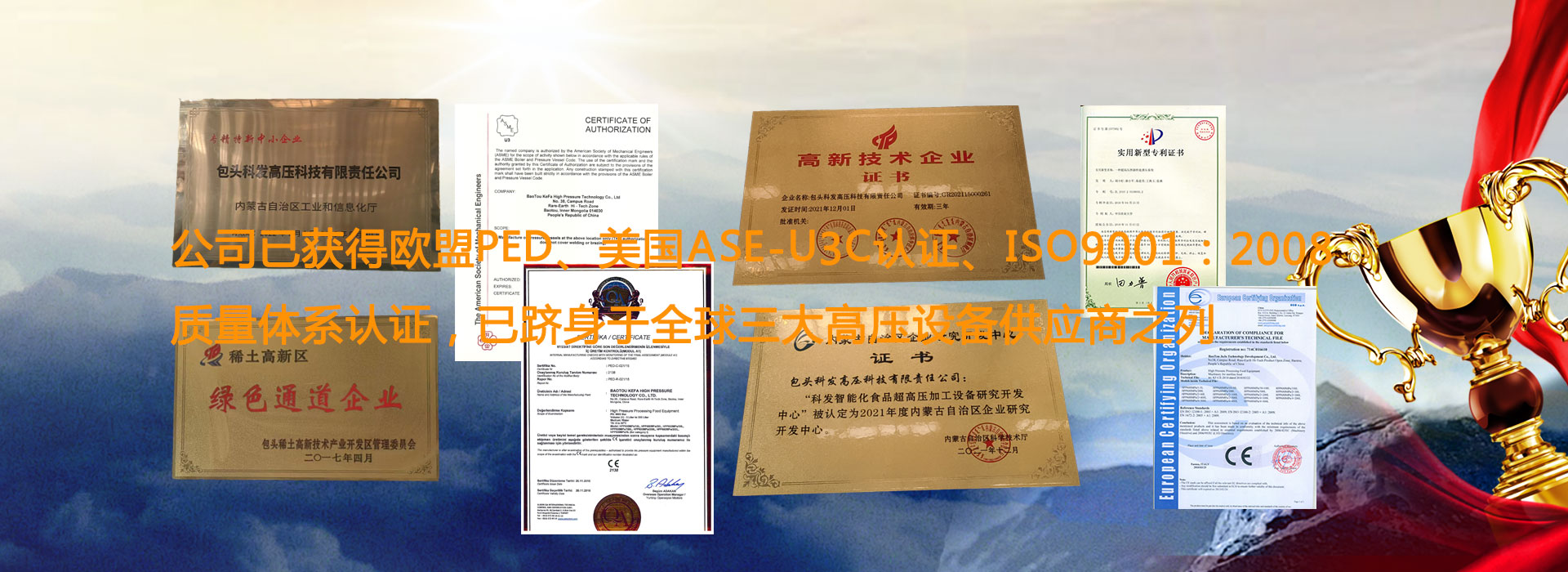 包頭科發高壓科技有限責任公司是 2001 年在包頭稀土高新區成立的高科技民營企業.已獲得國家高新技術企業、內蒙古自治區企業研究開發中心證書和內蒙古工信廳“專精特新”企業。主要致力于超高壓技術及裝備、非熱加工技術及裝備、冷熱等靜壓技術及裝備、超高壓食品加工技術和超高溫等靜壓電芯新材料技術的研究開發、設計、生產、銷售及冷熱等靜壓新材料和新型食品高壓加工技術的推廣。公司技術力量雄后,擁有高級工程師三名、博士一名...